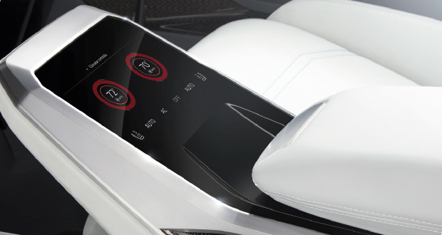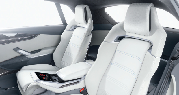 O painel de instrumentos chama a atenção por mesclar elementos atuais, como a tela configurável de alta resolução posicionada atrás do volante e futuristas, como a tira negra que vai até as portas e embute a tela TFT multifunção de 12,3 polegadas e outras telas sensíveis ao toque, que substituem botões, interruptores e alavancas.