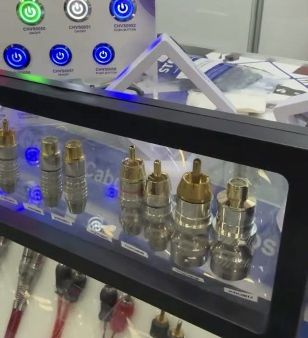Suportes para alto falantes, cabos específicos de som para todos os tipos de projetos, conectores e fusíveis fizeram sucesso durante os dias do evento.