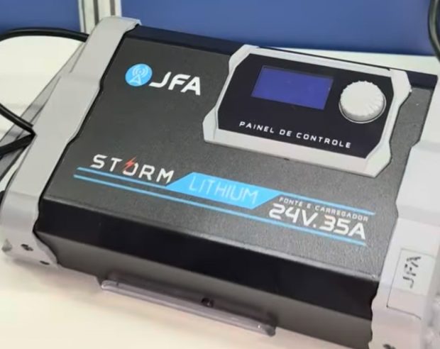 Tradicional no ramo de fontes e baterias o foco da JFA esteve nas baterias de lítio. A linha de fontes Storm 12V agora tem versões para e 48V e 24V e são próprias para recarga de baterias de lítio.