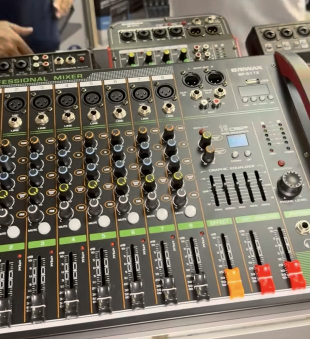 Tradicional na linha de iluminação e acessórios em geral, a Briwax trouxe uma linha completa de mesas de 2 a 16 canais. Todas com controle de microfone, Bluetooth, efeitos entre outras possibilidades tanto para a linha hobby quanto para a linha profissional.