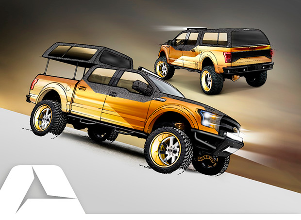 A XLT Supercab, da preparadora A.R.E. Accessories, é uma versão radicalmente modificada da pick-up campeã de vendas dos Estados Unidos. Traz visual dourado com detalhes em preto e cobertura customizada da caçamba, com sistema automático de abertura e fechamento, para maior proteção da carga. Vem com motor EcoBoost 3.5 e rodas personalizadas de 24 por 12 polegadas.