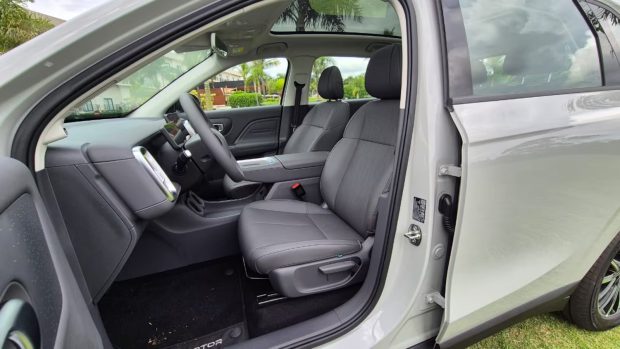 A suspensão apresenta calibração mais firme que parte dos rivais chineses, mantendo bom controle de carroceria em rodovia. O acabamento segue padrão consistente, com bancos de espuma macia e bom nível de montagem.