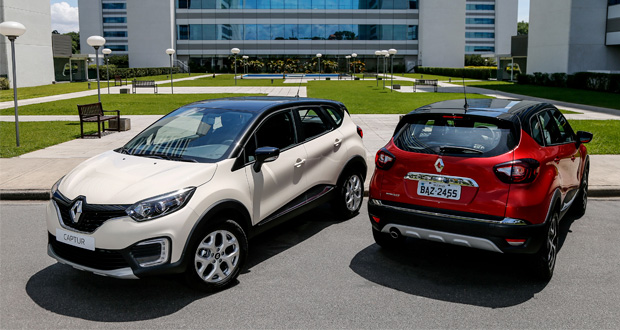 • Captur Intense 2.0 automático: adiciona rodas aro 17 polegadas de liga leve diamantadas, apoio de braço, Media Nav 7” touchscreen, câmera de ré, ar-condicionado automático, sensor de chuva, farol de neblina com função Cornering Light, sensor crepuscular. Opcional: bancos em couro e pintura biton.