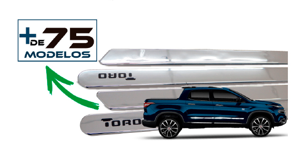 Os frisos estão disponíveis em diversos modelos. Destaque para o friso Largo adesivado que atende mais de 75 carros e o friso Robust, um acessório universal, que pode ser aplicado em qualquer veículo. Todos os modelos possuem alto brilho e proporcionam proteção extra para a porta do veículo, além de garantirem um visual luxuoso e diferenciado.